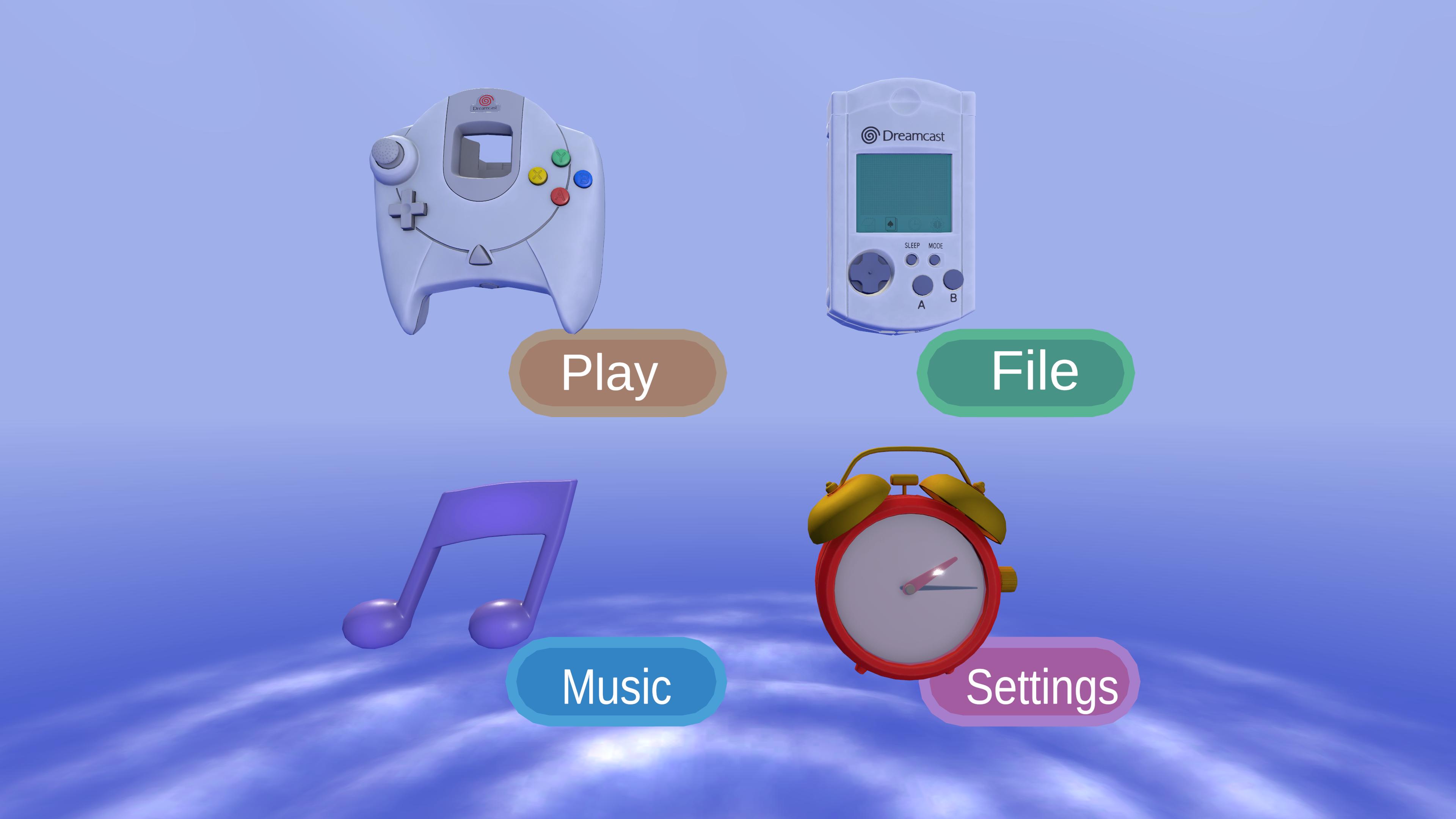 A short, immersive VR recreation of the Sega Dreamcast system menu and iconic game spaces, complete with a functional music player.